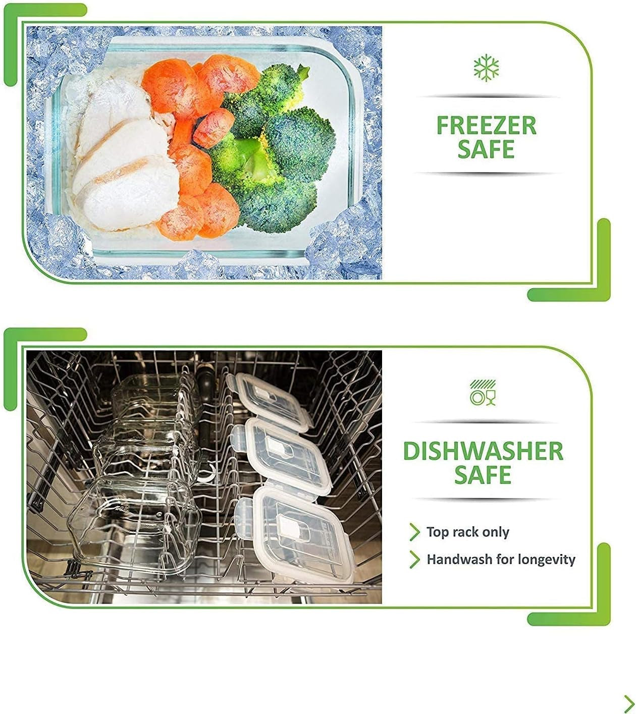 • Prep meals at home, then eat on the go - great for an active lifestyle. Our glass glass bowl with lid is microwave, oven, and dishwasher-safe (not the lids), allowing for quick preparation and easy washing. And because these are freezer boxes, you can store your food as long as you like.