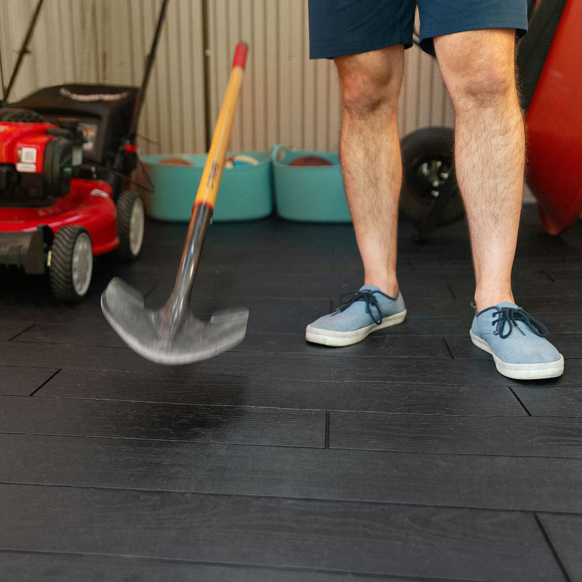 - Slip-resistant high-density polyethylene (HDPE) floor protects against oil, solvents, and stains