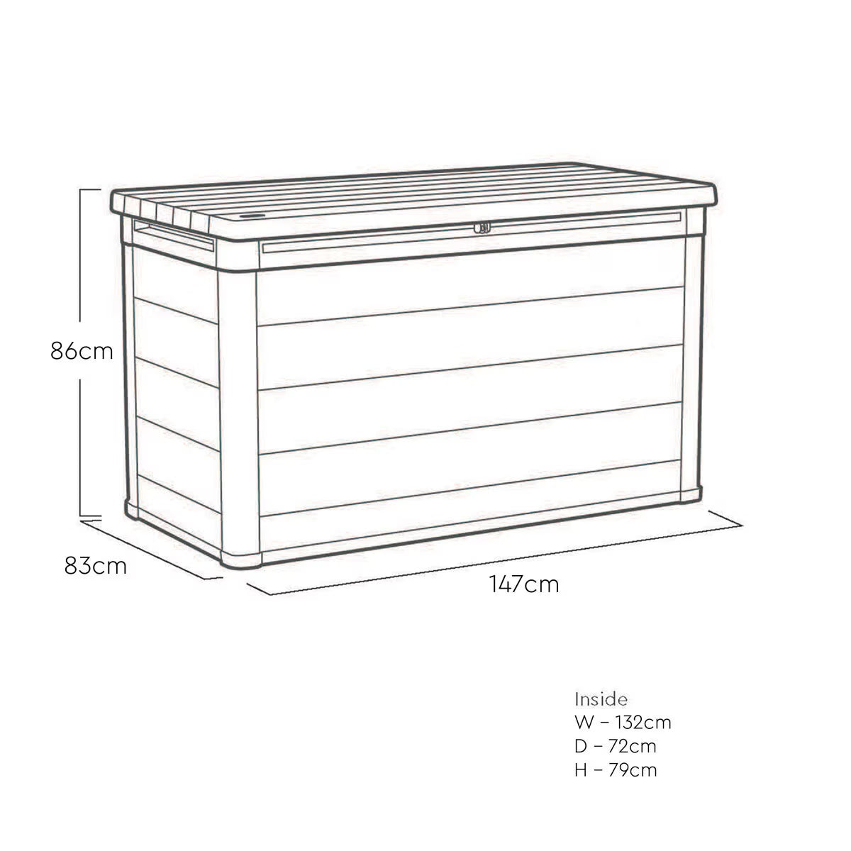Ideal for your outdoor living space, the Ashwood 870 litre (230 gallon) storage box from Keter's premium Signature Collection will help you keep your garden and patio clutter-free. Boasting a spacious interior, this extra-large box is perfect for a wide range of items, whether you want to store large cushions, gardening tools, or your kids’ toys. The wood like texture also guarantees that the box will look fantastic anywhere and will add a touch of classic style to modern outdoor furniture. Since it’s made of durable resin, the box is all-weather resistant and UV protected, as well as maintenance free.