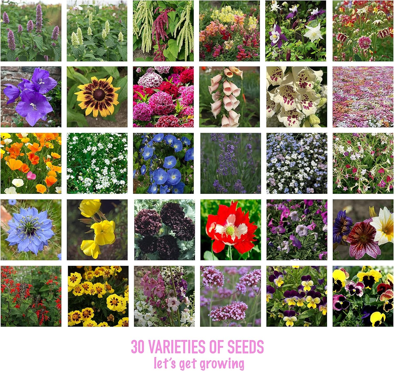 Flower Seed Variety Pack - 30 Different Varieties of Flower Seeds to Grow Your Own. Butterfly and Bee Attracting, Grow Indoor and Outdoor. Mother'S Day Gifts for Women and Men.