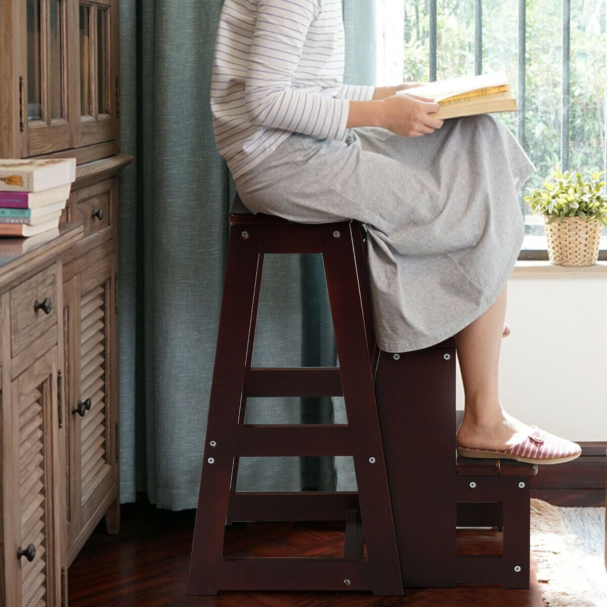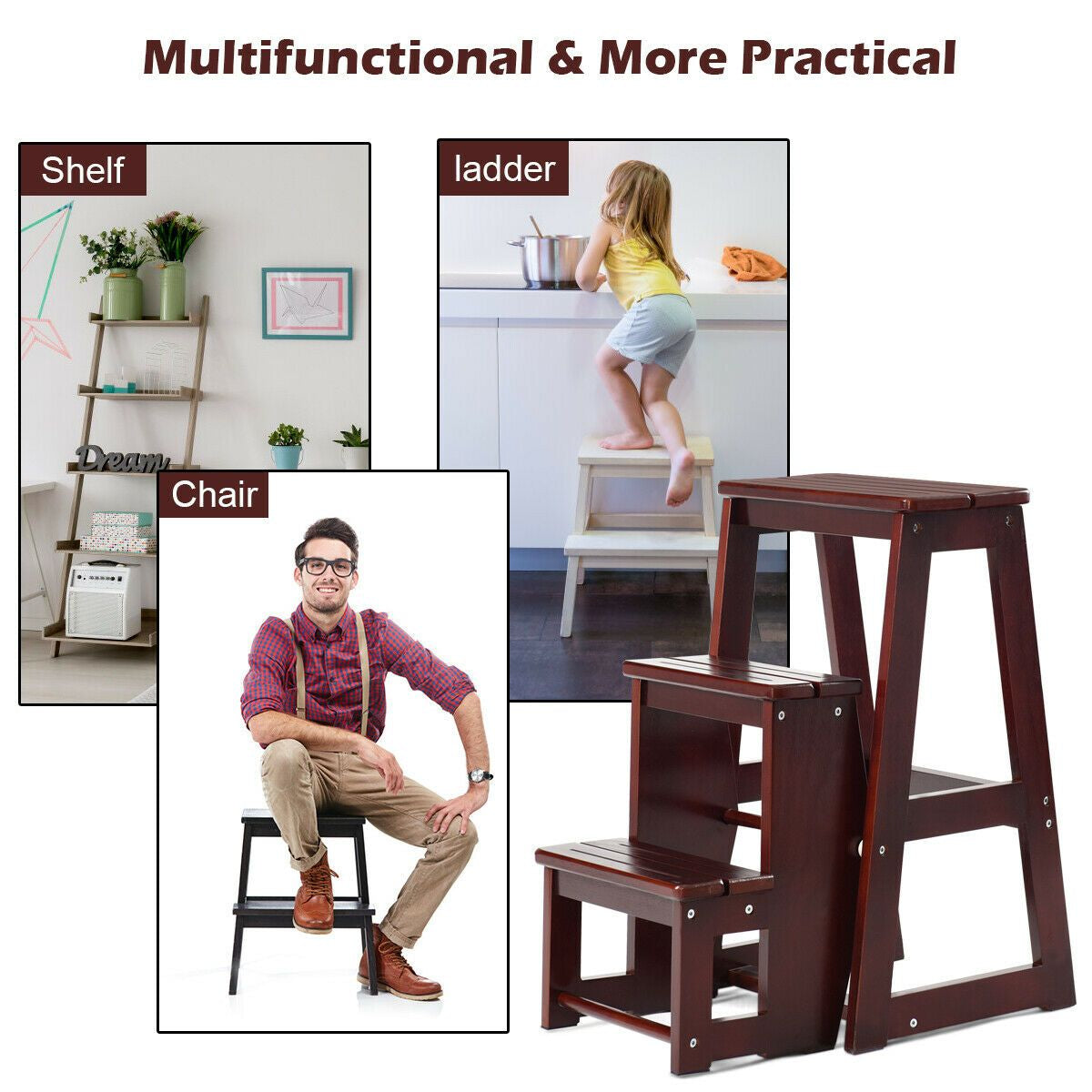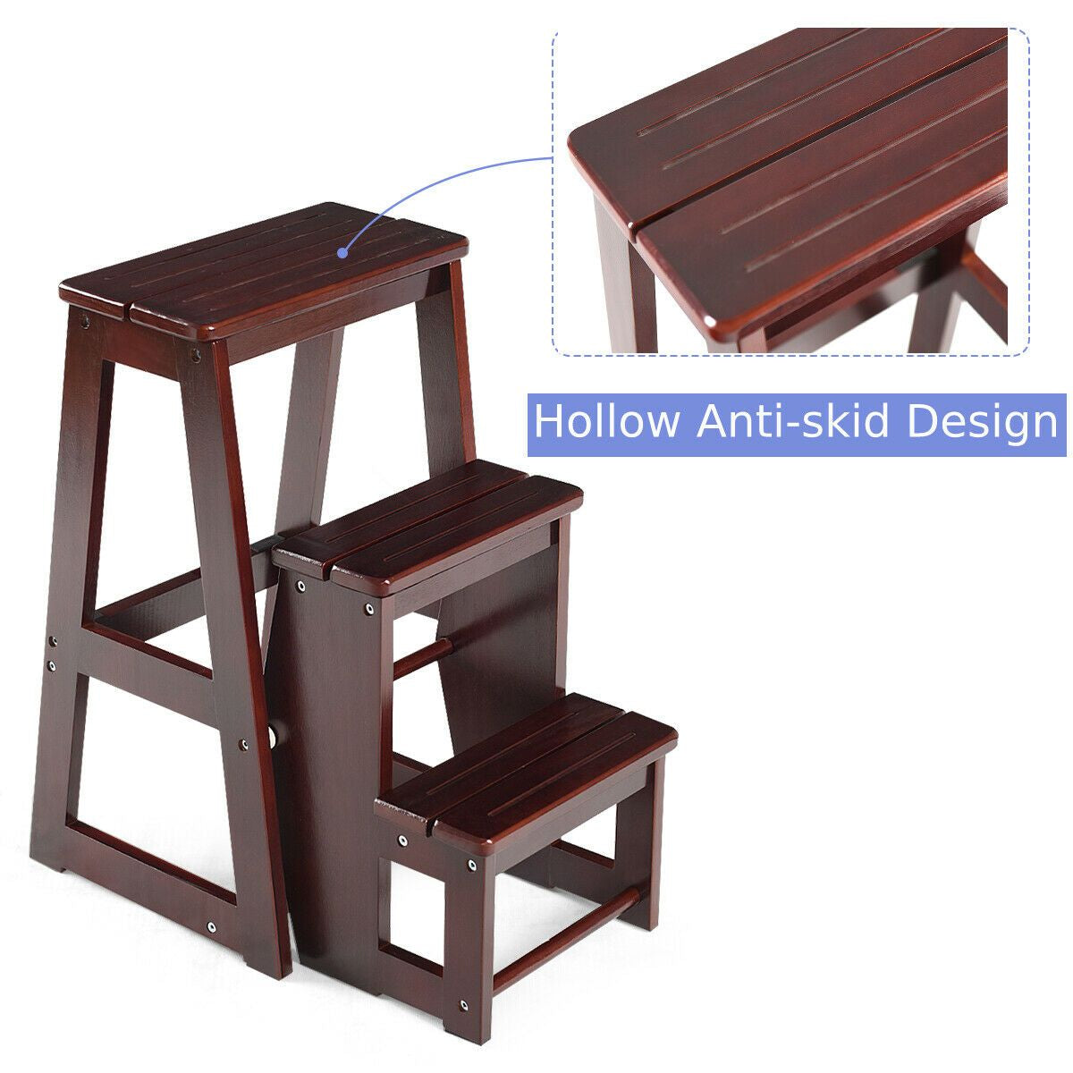 Folding 3 Tier Step Stool Wooden Folding Stepladder Shelf