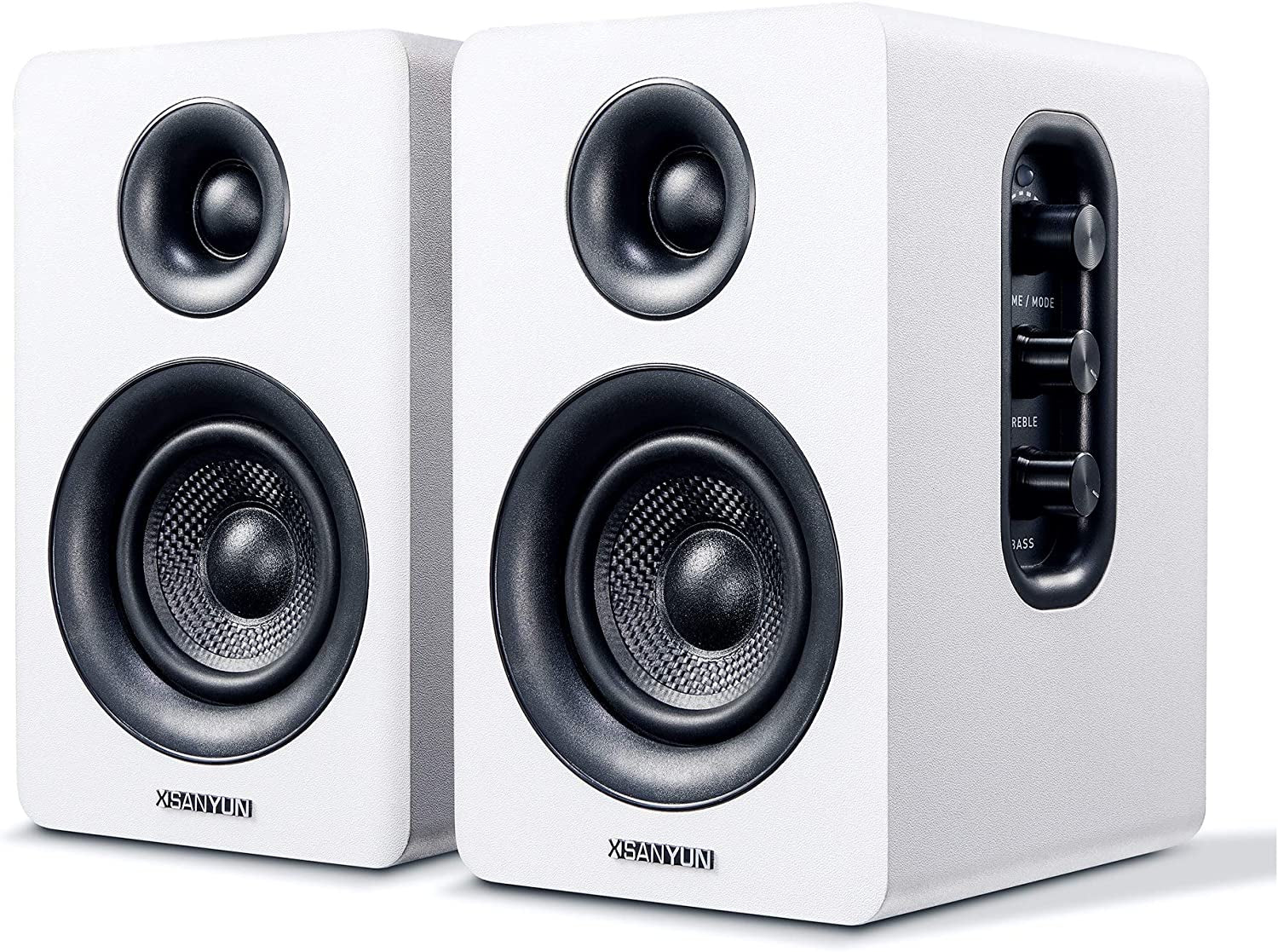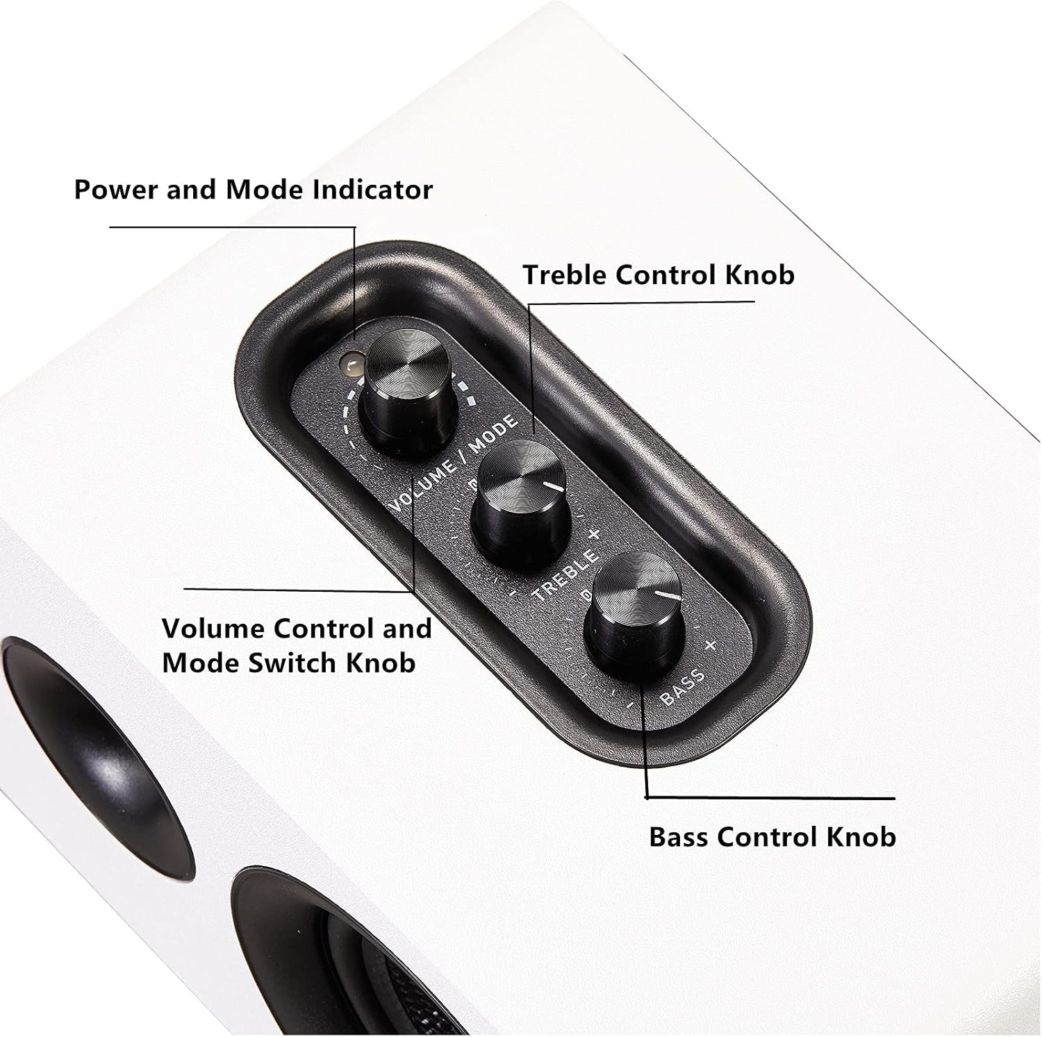 SW208 3" Active Bluetooth 5.0 Bookshelf Speakers - 60W Power, 24Bit DAC, Dynamic 3D Surround Sound - Perfect for Gaming & PC (White, Pair)