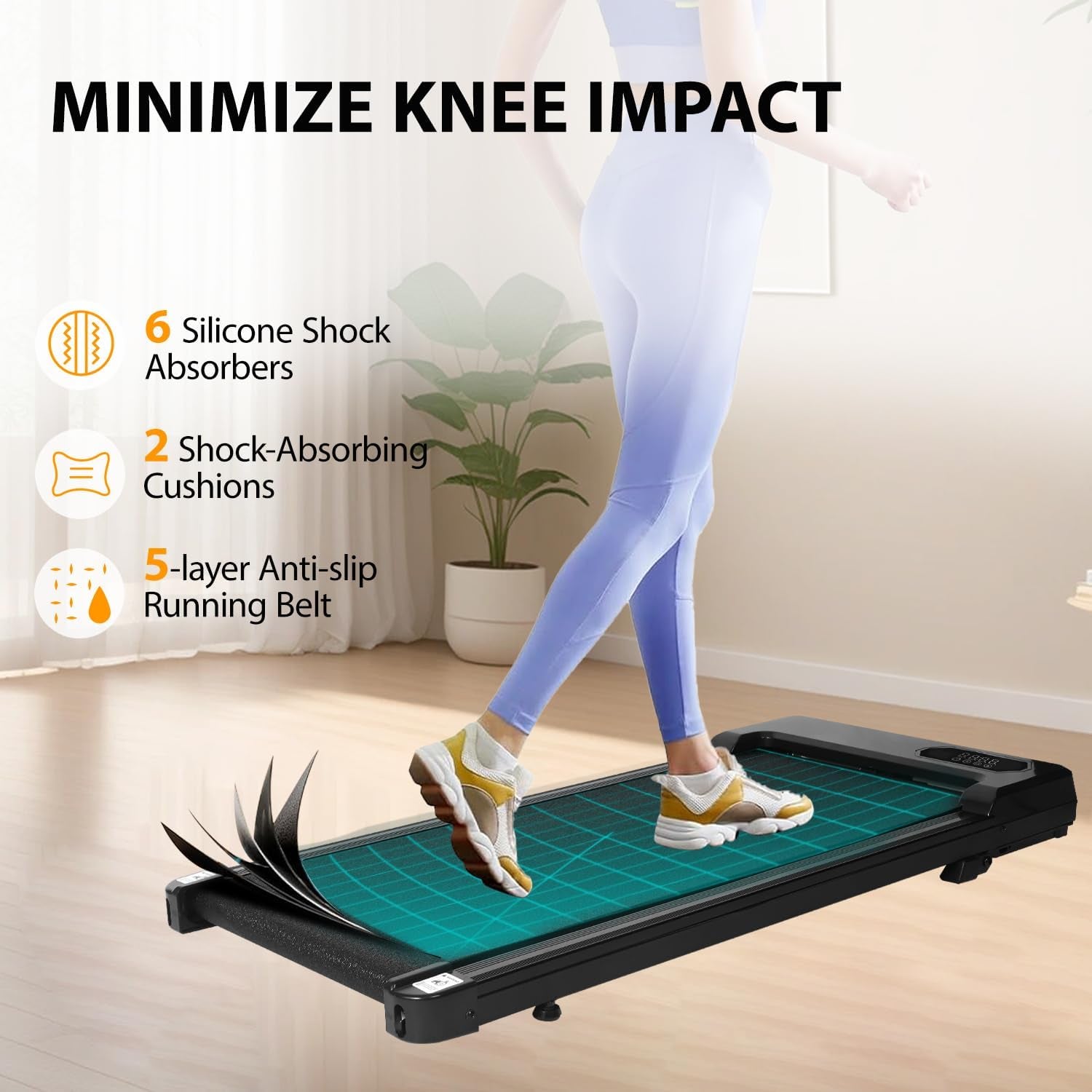 • MINIMIZE KNEE IMPACT - Equipped with silicone shock absorbers, 2 shock-absorbing cushions and 5-layer non-slip walking belts, the walking machine treadmill aims to protect your knees and promote your fitness experience
