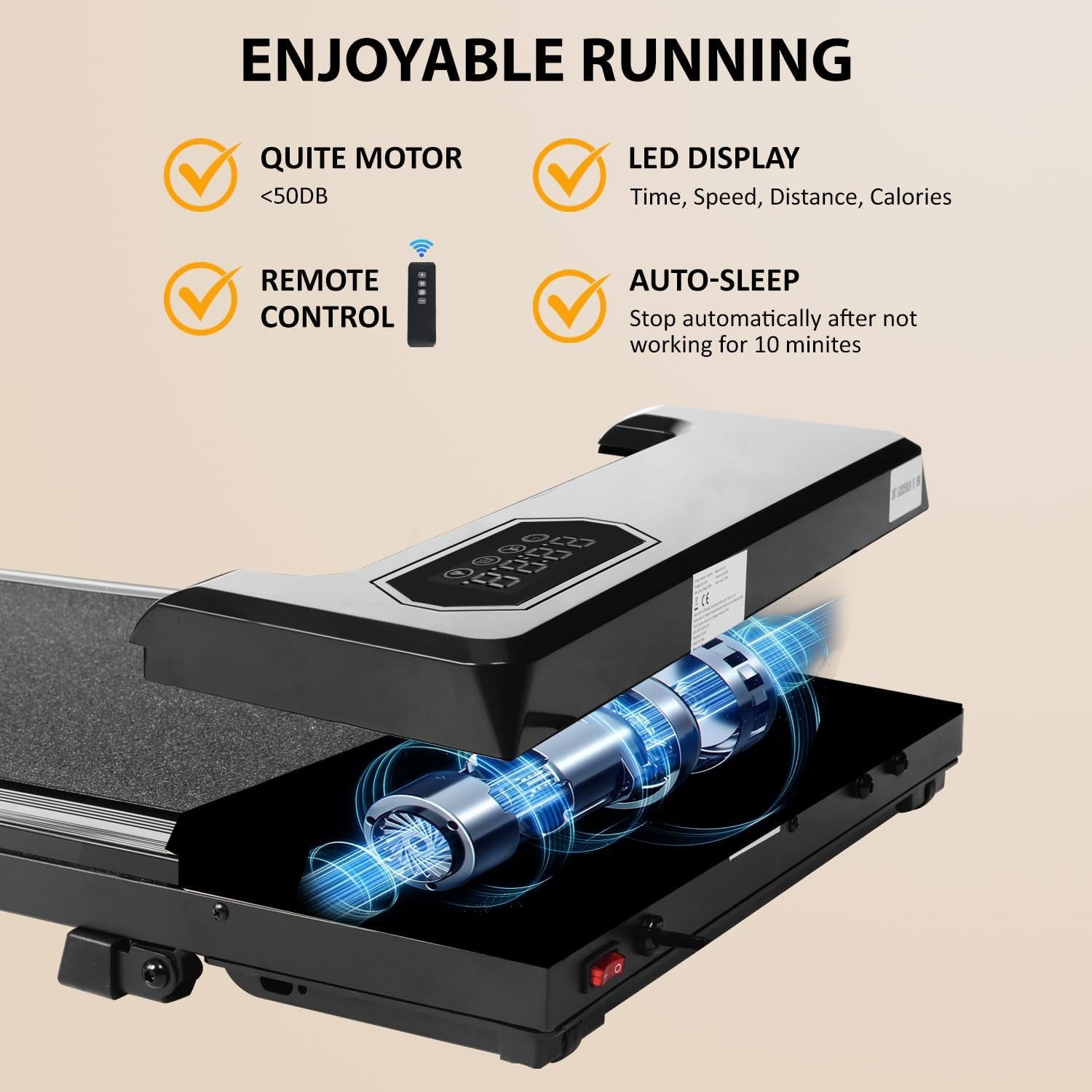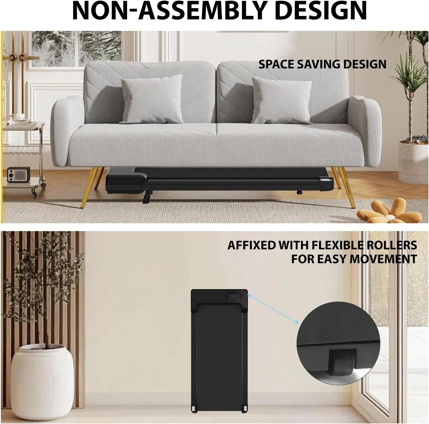 • NON-ASSEMBLY DESIGN & SPACE SAVING - Plug in and use our treadmills to exercise right away! Compared to traditional treadmills, our under desk treadmills eliminate the tedious assembly process and potentially high assembly costs. Under desk treadmill offers you the easiest exercise pleasure! This walking pad is easy to move and store, which is perfect for small room. Our treadmill can be easily placed under the sofa, corner or bed. Save a small amount of floor space when the machine is not in use